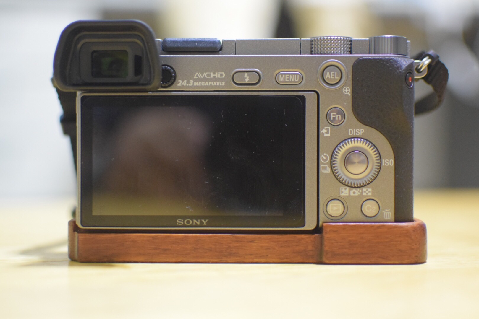 Wood grip blended into the camera to protect from scratching